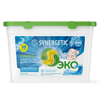 Чтобы добиться экономии при покупке капсул SYNERGETIC, следите за скидками в магазинах и покупайте объемные упаковки на 100 штук. Капсулы бренда содержат семь видов энзимов против различных типов пятен, защищают одежду от катышков, сохраняют эффективность при стирке в режимах 25–90 °C, подходят для детского белья и безопасны для природы и человека.