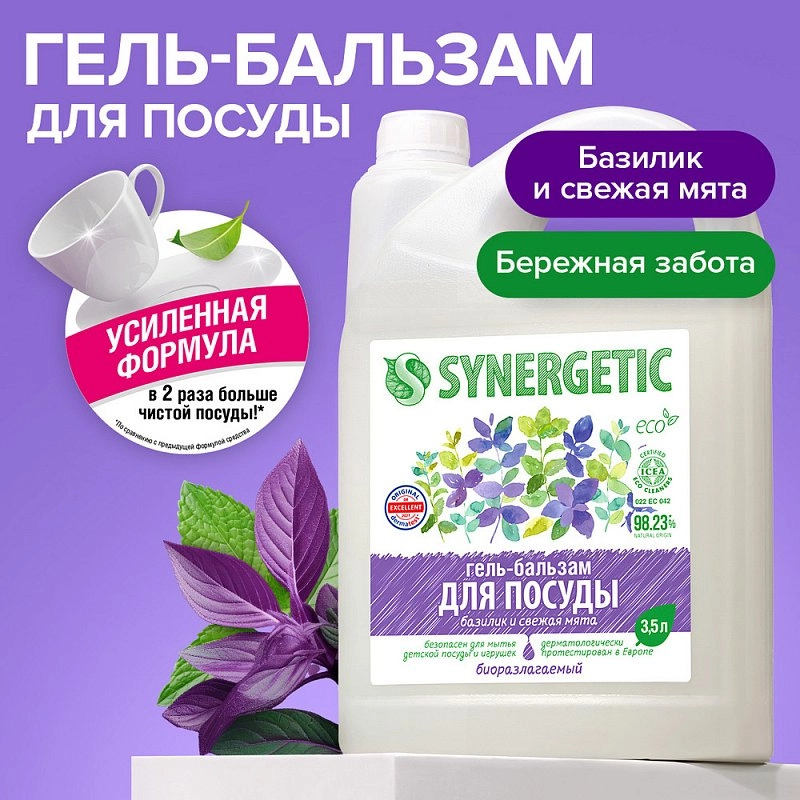 Попробуйте гель-бальзам для мытья посуды и детских игрушек «Базилик и свежая мята». Средство нейтрализует неприятные запахи и наполнит пространство изысканными душистыми нотками!