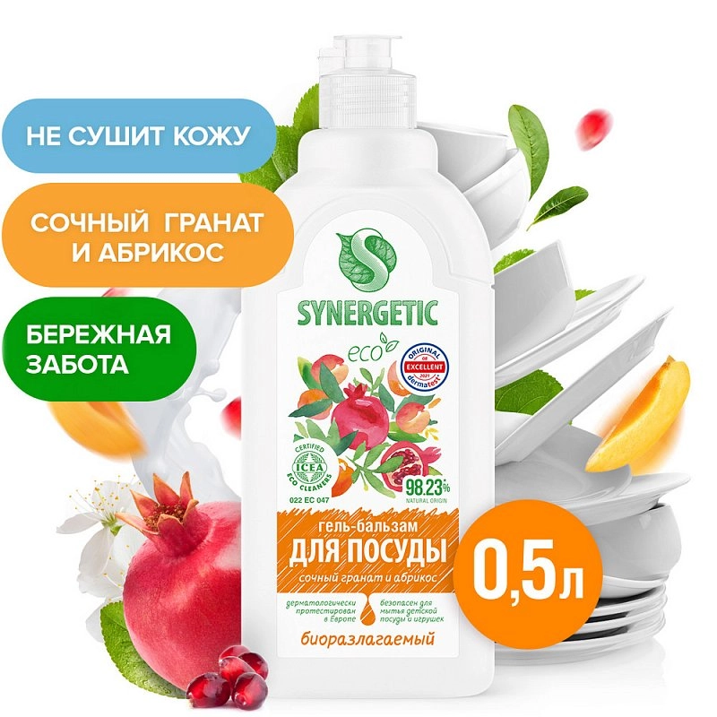 Гель-бальзам для мытья посуды и детских игрушек «Сочный гранат и абрикос» не только идеально очищает загрязнения и защищает посуду от царапин, но и дарит ей яркий аромат спелых плодов абрикоса и сладкого граната.