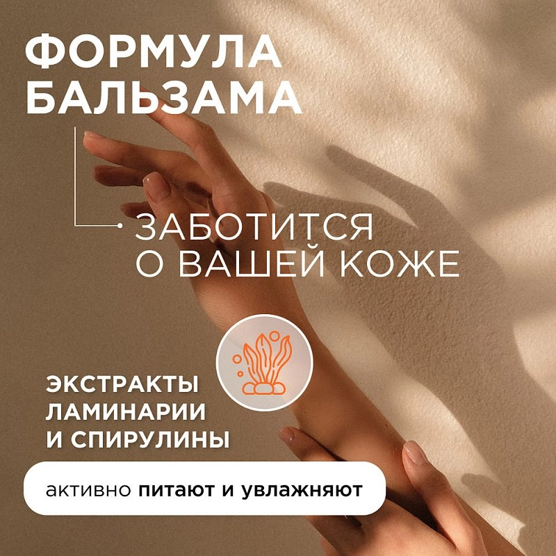Экстракты ламинарии и спирулины активно питают и увлажняют кожу рук, делая её более мягкой, повышая эластичность. Биолипиды увлажняют и разглаживают кожу рук при длительном применении.