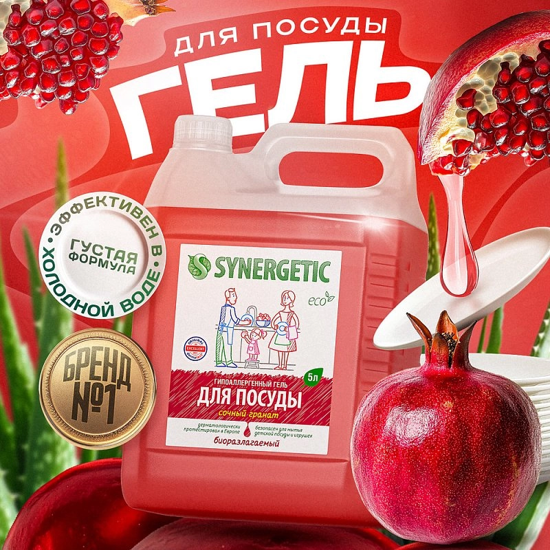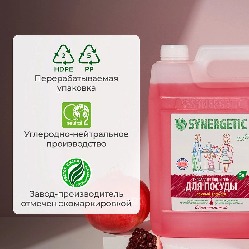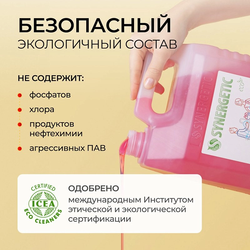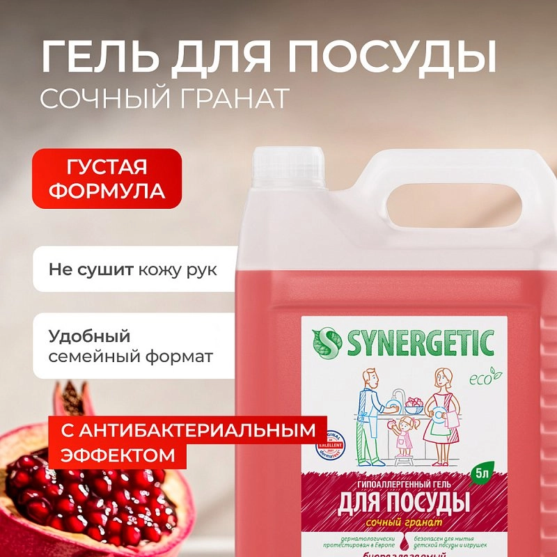 Биоразлагаемый концентрированный гель для посуды с антибактериальным эффектом SYNERGETIC - это экологичное, безопасное и эффективное средство для мытья всех видов посуды, в том числе детской, кухонного инвентаря и детских игрушек от любых видов загрязнений. Он не оставляет следов на посуде.