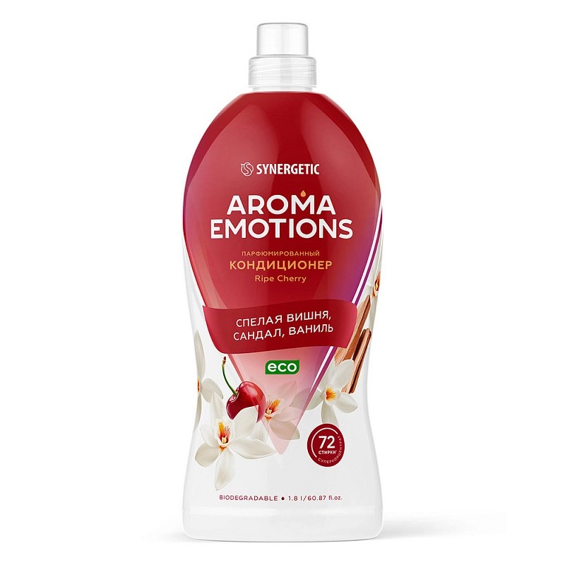 Биоразлагаемый кондиционер для белья SYNERGETIC «EMOTIONS» Spelaya Vishnya / Спелая вишня – это не просто средство для ухода за тканью, это путешествие в мир ароматов, возможность выразить свою индивидуальность и добавить немного роскоши в повседневную жизнь.