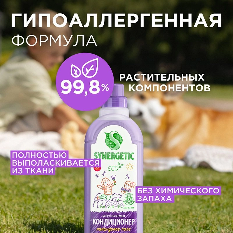 Сейчас объясним, к чему это мы. Средство для стирки обеспечивает чистоту, но именно кондиционер незаметно повышает качество жизни каждый день: смягчает ткань, придает аромат свежести, облегчает глажку и дает антистатический эффект. Вспомните ощетинившиеся махровые полотенца, которые стоят колом после высыхания — огрубевшая ткань хуже впитывает влагу и раздражает кожу. Кондиционер SYNERGETIC справляется со своей задачей даже в жесткой воде и заботится о вашем хорошем настроении каждый день.
