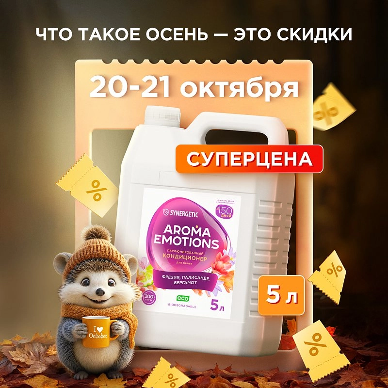 Биоразлагаемый кондиционер для белья SYNERGETIC «EMOTIONS» Joy / Радость – это не просто средство для ухода за тканью, это путешествие в мир ароматов, возможность выразить свою индивидуальность и добавить немного роскоши в повседневную жизнь.