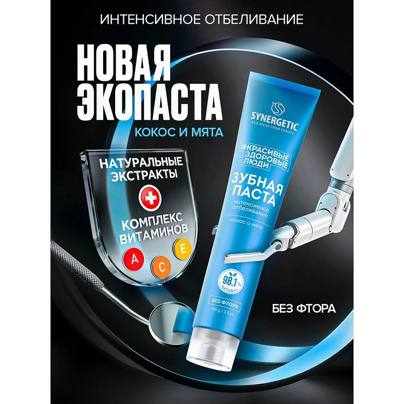Зубная паста SYNERGETIC "Интенсивное отбеливание" — это безопасная и эффективная формула с высокой концентрацией натуральных компонентов для бережного ухода за зубами и дёснами. Активные компоненты зубной пасты эффективно очищают и способствуют интенсивному осветлению зубной эмали.
